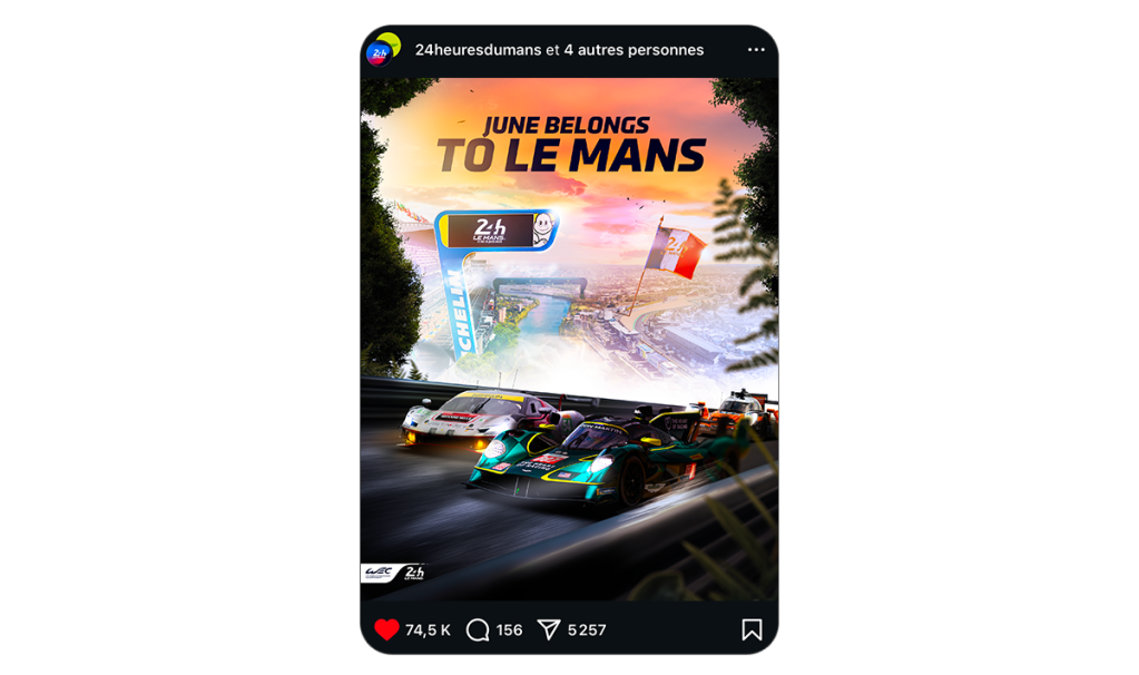 Au cours de mes années passées au circuit des 24 Heures du Mans, j’ai eu l’opportunité de concevoir de nombreuses créations graphiques destinées aux réseaux sociaux.
